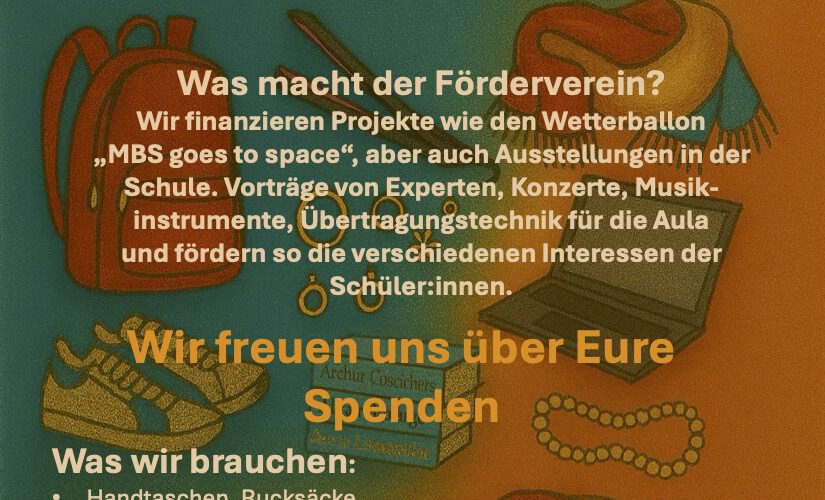 Für den Flohmarkt des Fördervereins der Max-Beckmann-Schule am Tag der offenen Tür können bis zum 27.10 bis 31.10, jeweils von 13:15 bis 16:00 Uhr im Eingangsbereich der Schule (Eingang Sophienstraße) Spenden abgegeben werden. Was wir brauchen: Was wir nicht brauchen: